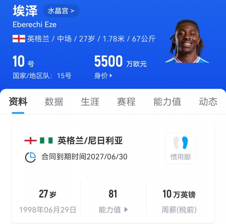 首轮表现优异的水晶宫,有可能在一个夏窗就失去队内三核:埃泽(5500万欧元)、沃顿(4500万欧元)、格伊(4500万欧元),这三人正好是水晶宫队内身价最高的三人。